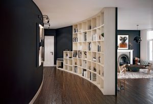 Bibliothèque sur mesure dans un couloir en courbe